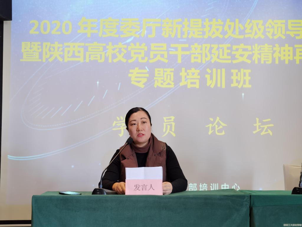 2020年12月25日-27日,2020年度委厅新提拔处级领导干部暨陕西高校党员干部延安精神再教育专题培训班在延安举行,全省40余人参加,材化成人网党委副书记张艳霞在培训班上作交流发言。