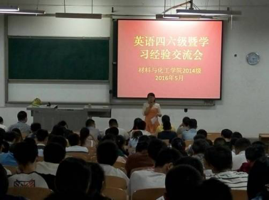 于教3-217举办2014级四六级学习经验交流会。参与本次交流会的有材化成人网2014级辅导员张瑞红、陈远林以及2014级全体同学。特别邀请到学习经验丰富且在四六级考试中取得傲人成绩的2012级杨丹、丁一耕学姐以及2014级张锐、张洵、冯梁辰三位同学。