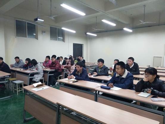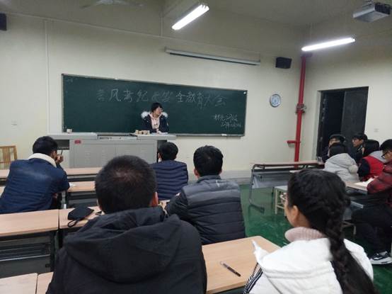 2017级辅导员刘强珺老师在工3-504召开2017级考风考纪教育大会。