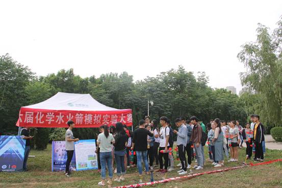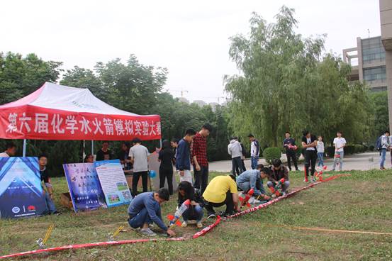 科学技术协会特别举办化学水火箭模拟实验大赛。此次大赛于2018年5月27日在教一楼北边空地举行,到场的有成人网