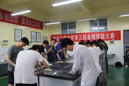 第三届金相技能大赛于工四-406和工四-408展开为期两天的百人竞赛,整个比赛过程在刘翠霞老师、陶栋老师、团委书记段强以及团学干部的共同努力下,9组参赛选手之间的比拼圆满结束。