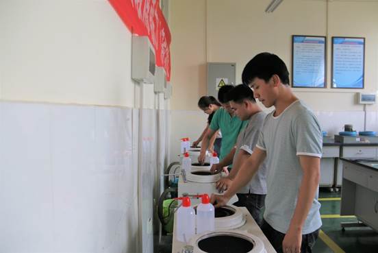 本次金相技能大赛参与人群达到270人左右,每一组比赛限时一个小时。在每一组的比赛现场,各个参赛队员摩拳擦掌,热情熠熠,耐心细致地进行手工打磨、金相腐蚀及显微观察等各项操作,工匠精神展露无遗。同学们严格遵循平时练习时的操作规范,每一步都力争完美。平磨的砂纸上,每一道磨痕都均匀稳定;抛光液与试样的交融,抛去的是“伪”与“杂”,留下的是“坚持”与“求是”;表面腐蚀,耐心细致;显微观察,更是检验与收获。整个大赛至26日18:20,圆满落下帷幕。
