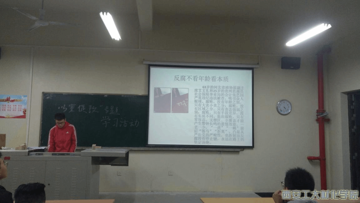 本次会议由支部副书记李姝姝主持,她首先明确了会议主题,强调了以案促改对提高学生党员思想的重要意义。接着她带领我们学习了西迁精神与延安精神,指出革命先辈的无私奉献与吃苦耐劳是学生党员需要铭记及传承的。接着冯浩同学与我们分享了习近平总书记提出的“增强四个意识,树立四个自信”,并指出牢记使命,不忘初心是我们前进的永恒旗帜。之后王智成同学带领大家学习了典型案例,“63岁河北省政协原副主席艾文礼和25岁贵州省思南县社会保险事业局会记张艺落马事件。”指出国家反贪态度决绝,不论年龄大小,职务高低,一律严肃处理。大家从根本上提高了思想认知。最后王智成同学带领大家重温入党誓词,重温当初入党的决心与信念,始终铭记入党誓词对我们也是一种鞭策和鼓励。