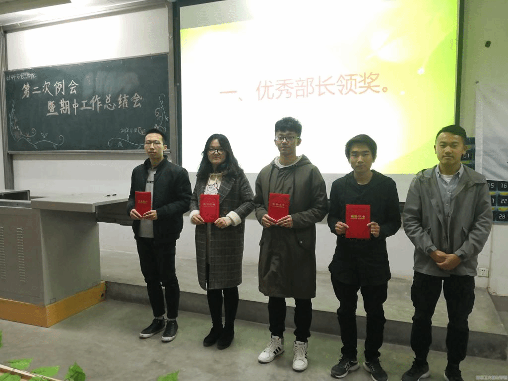 学生会于2018年11月18日下午6时在教一-104召开工作中期总结会议。材料与化工学院学生会主席团、各部门部长及全体干事参加本次会议。